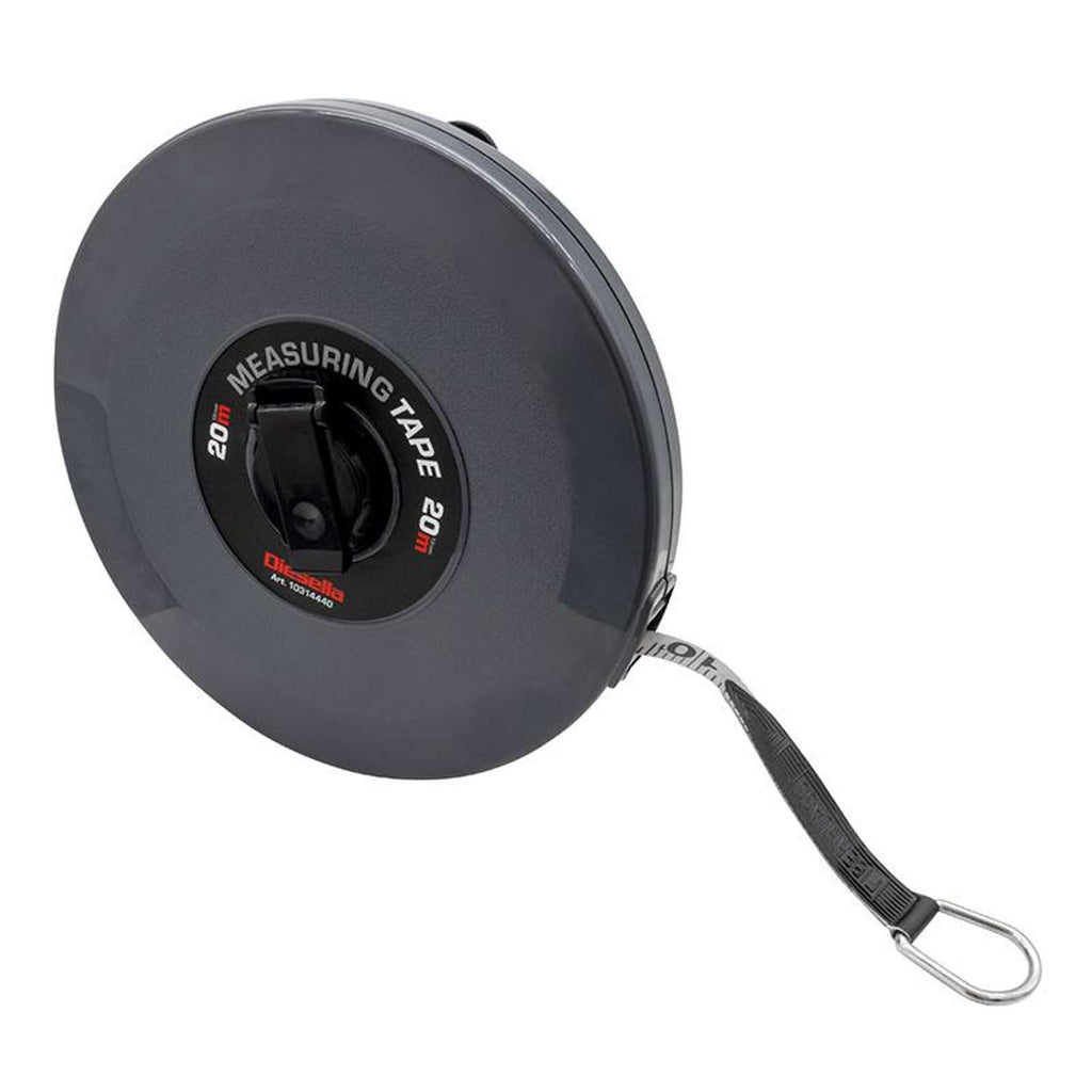 Heavy duty glasfiberbåndmål med nylonbelagt bånd som gør båndmålet ekstra slidstærkt. Med gult båndmål, sort mm-skala og røde tal for hver 1 meter.