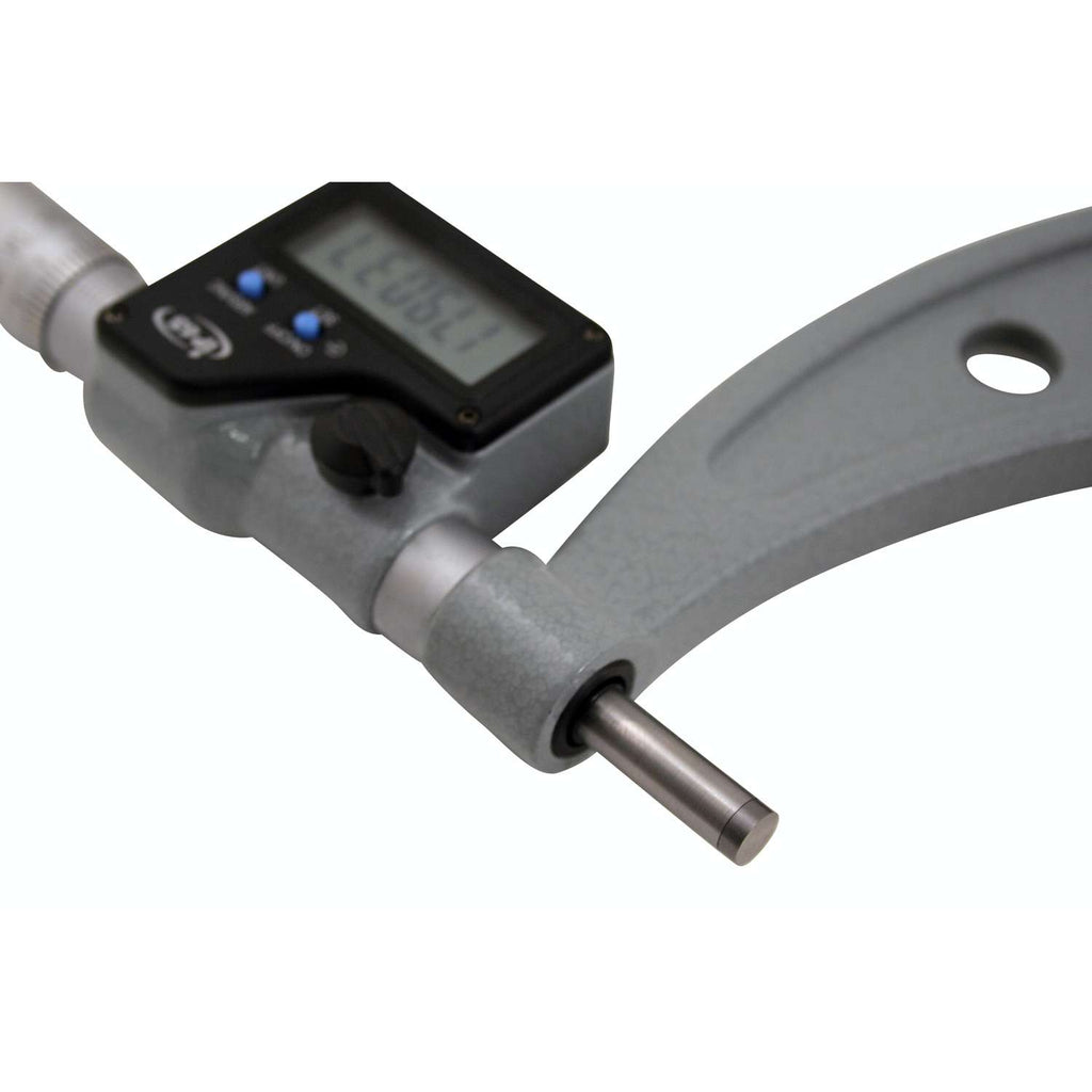 ABS funktion. Matforkromet med hårdmetal måleflader, lakeret isoleret bøjle, omskifter mm/Tommer, nulstilling, kontrolmål medfølger. IP65 godkendt. Aflæsning: 0,001 mm.