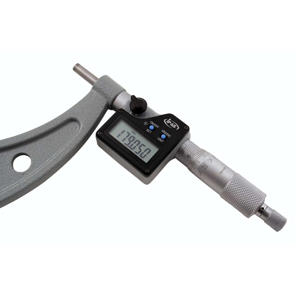 ABS funktion. Matforkromet med hårdmetal måleflader, lakeret isoleret bøjle, omskifter mm/Tommer, nulstilling, kontrolmål medfølger. IP65 godkendt. Aflæsning: 0,001 mm.