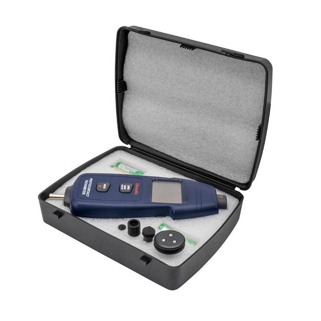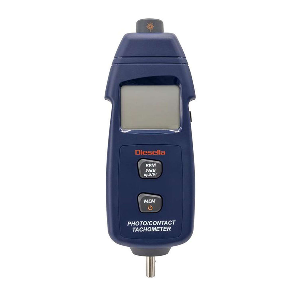 En kombineret omdrejningstæller med både optisk og mekanisk måling af omdrejningshastighed.