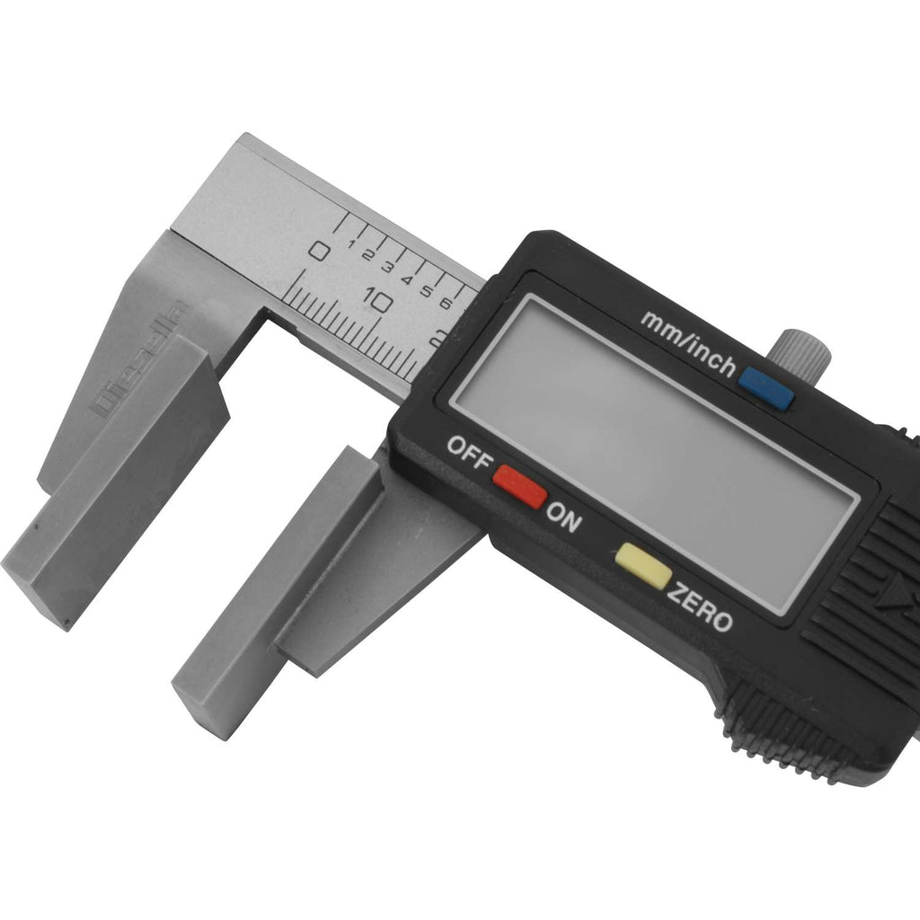 Digital skydelære med 20 x 30 mm måleflader. Optimal til måling af wire/ kabler. Måler fra 0-150 mm med 0,01 mm aflæsning og kæbelængde på 40 mm. Manuel on/off, nulstilling, omskifter mm/tommer.