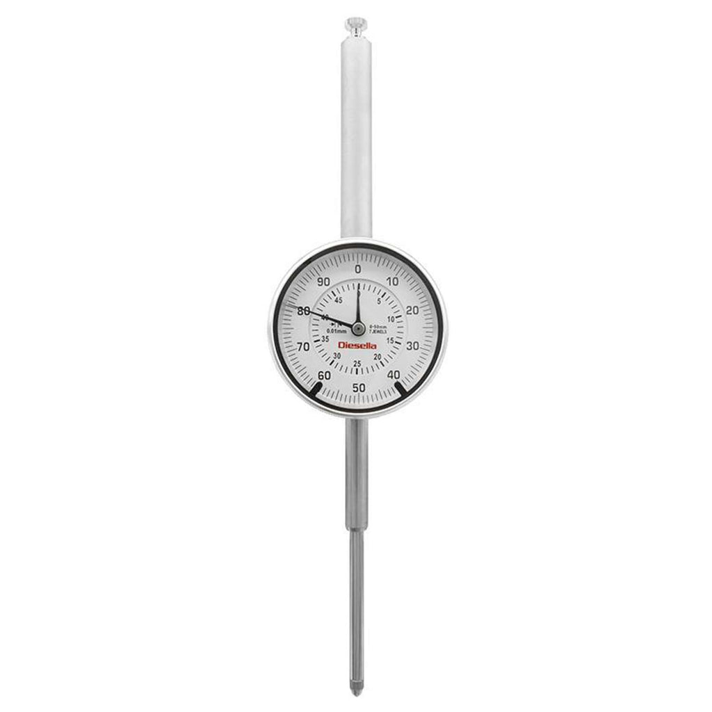 DIESELLA Måleur 0-50 x 0,01mm med tolerancepile og Flad bagplade + bagplade med øje + Werkscertifikat