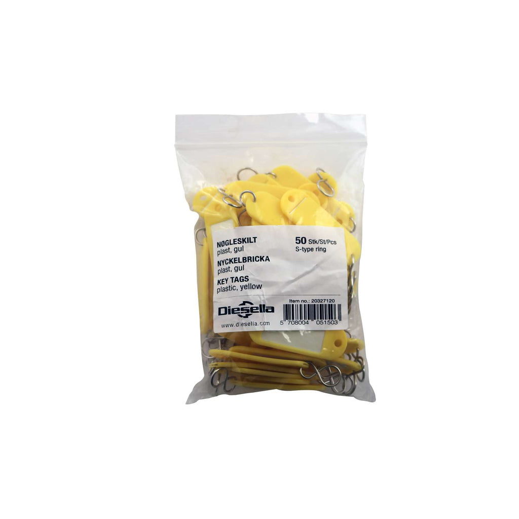 DIESELLA Nøgleskilt i plast med rude og S-krog (50 stk forpakning-GUL farve)