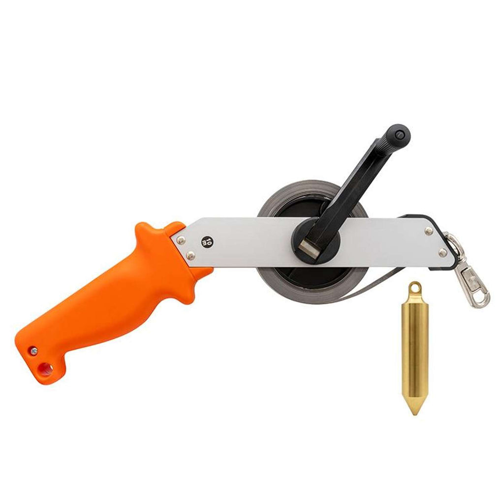 Tankbåndmål med båndbredde 13 mm med mm/tomme gradering på hvidmalet stålbånd med karabin hage og aluminiumsramme. Leveres inkl. messing lod uden gradering. Tank båndmål anvendes typisk til dybdemåling i eksempelvis brønde eller tanke.