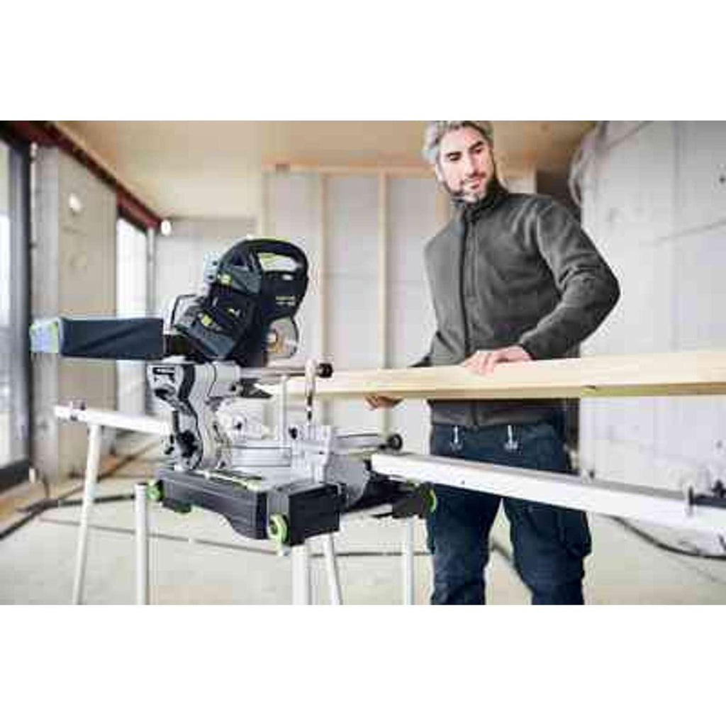 rundsavklinge WOOD UNIVERSAL HW 216x2,3x30 W36, skruetvinge FSZ 120, LED belysning til skygge linje, smigvinkel, forhøjningsfødder, støvpose, Energi-Set SYS 18V 2x5,2/TCL 6 DUO, transportabel arbejdsstation, afkorteranslag KA-UG-KS 60 R/L, unbrakonøgle 6 mm