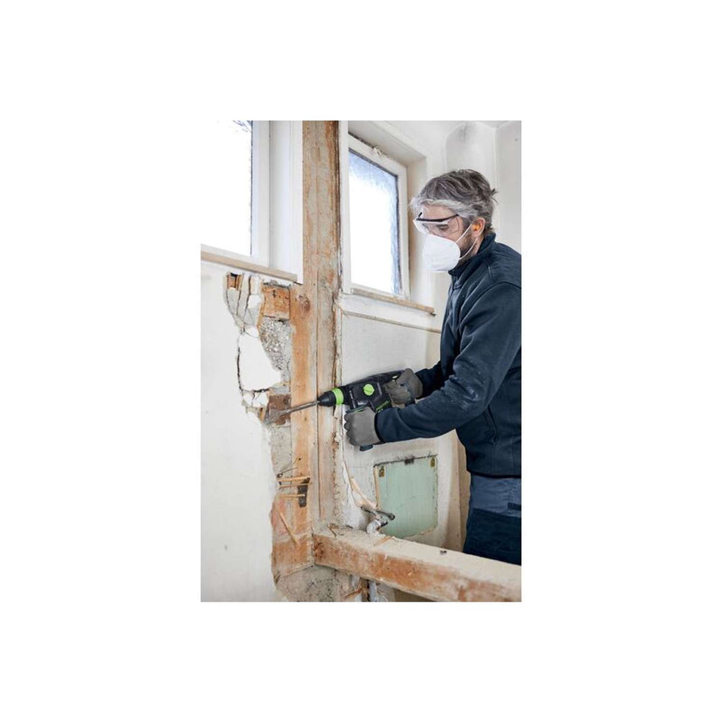 Kraftfuld og alsidig. Lige som dit arbejdeStyrker og fordeleKraftfuld: Takket være den kraftige kulfrie EC-TEC-motor og det pneumatiske slagværk sikrer 2,6 joule slagenergi hurtig boring og god fjernelse ved mejslingMange anvendelsesmuligheder: Egnet til hammerboring, mejsling og boring uden slag. Tilspænding og løsning af skruer ved at ændre omdrejningsretningenAlsidig: SDS-Plus- og hurtig-borespændepatron gør det muligt at bruge en lang række værktøjerGennemtænkt: Dybdeanslag til nøjagtig indstilling af boredybden, LED-lys for optimalt sigt, stilladskrog til sikker fastgørelseKomfortabel udsugning: Den praktiske udsugningsanordning (fås som tilbehør) passer til enhver anvendelse og til det smarte Festool udsugningssystem med støvsugerMere sikker: Det elektroniske KickbackStop minimerer risikoen for skader i tilfælde af pludselig blokering af boret. Startspærren forhindrer utilsigtet opstart af maskinenArbejd uden at blive træt: Takket være det vibrationsdæmpede og ergonomiske grebRobust: Kulfri, vedligeholdelsesfri EC-TEC-motor for lang levetid18 V Bluetooth®-batterier: 5,0 Ah Bluetooth®-batterier, der er inkluderet i leveringsomfanget, er kompatible med alle maskiner og batteriladere i Festool 18 V-programmet. Og kan kombineres fremragende med støvsuger-fjerntilkoblingen – maskine tændt, støvsuger tændtSikret: Komplet omfattet af Festool SERVICE ved registrering 30 dage efter købet (https://www.festool.dk/service/all-inclusive-garanti)HovedanvendelserIdeel til hammerboring op til Ø18 mm i beton, sten og murværk (maks. Ø 26 mm muligt)Også velegnet til let mejslearbejde, f.eks. til at slå gips, spartelmasse eller fliser af; mindre gennembrud og slidser i sandsten og murværkAlsidige anvendelsesmuligheder takket være udskiftelige SDS-Plus- og hurtig-borespændepatroner. Det gør den ideel til hammerboring, mejsling, boring uden slag og skruningFastgørelse af byggeelementer på beton og murværk med fastgørelsesmidler (Ø > 10 mm), f.eks. kraftige ankre, betonskruerFastgørelse af stilladser, stålkomponenter, trækonstruktioner, f.eks. tærskler, stolperFastgørelse af underkonstruktioner, sænkede lofter og andre elementer (Ø 5-10 mm) på beton og murværkFastgørelse af køkkenskabe, væghylder, lydisoleringselementer, gipsvægge, fodpanelerBoring og skruning uden slag, f.eks. ved boring i fliserBoringer i træ op til Ø 30 mm, stål op til Ø 13 mm og andre materialerDåseforsænkning op til Ø 68 mm i kalksandsten og murværkOmrøring af mindre mængder mørtel, puds eller maling med en rørestavArbejde med udsugning – Bluetooth®-batteriet starter automatisk den Bluetooth®-kompatible støvsuger i AUTO-funktionLeveringsomfang2 x batteri BP 18 Li 5,0 ASI, batterilader TCL 6, borepatron C SDS KHC, hurtig-borespændepatron KC 13 KHC, ekstra håndgreb AH-50/181 KHC, dybdeanslag, Systainer SYS3 L 187All-inclusive garanti--> Flere informationer