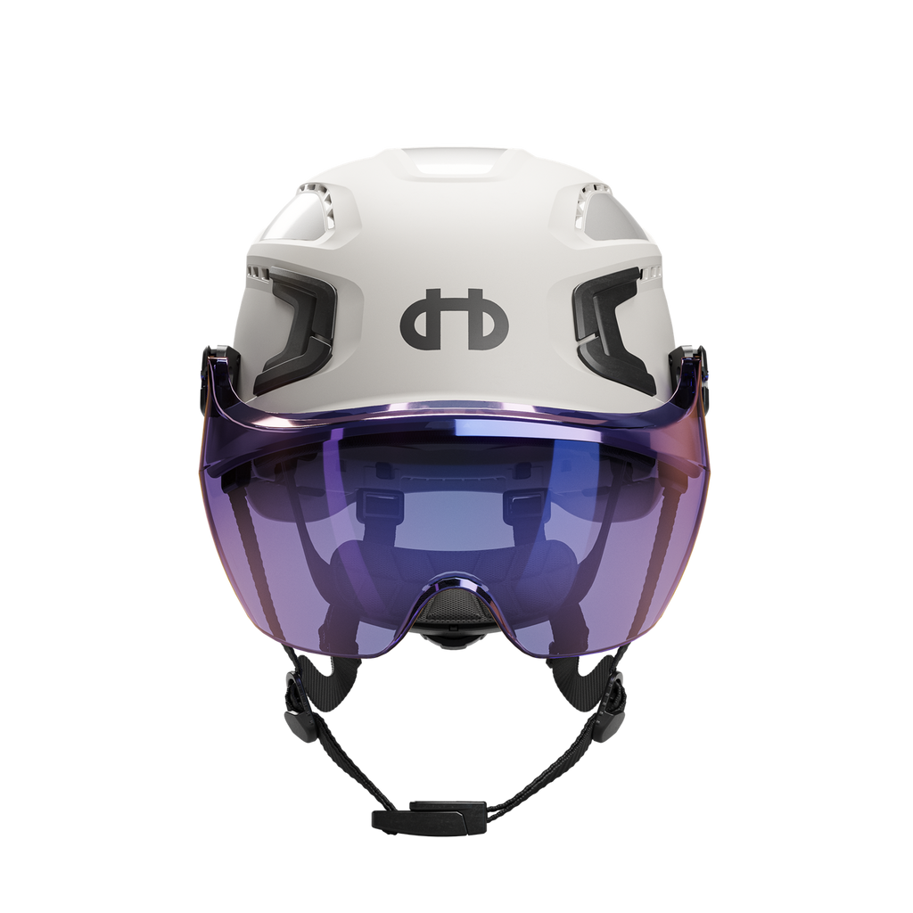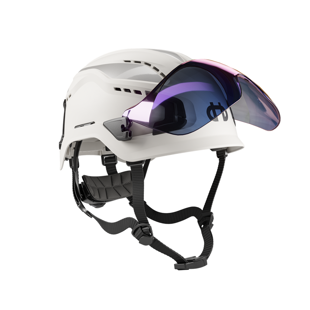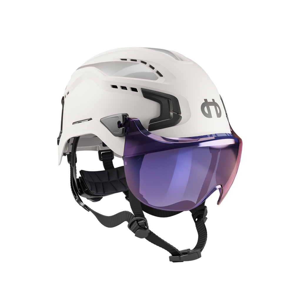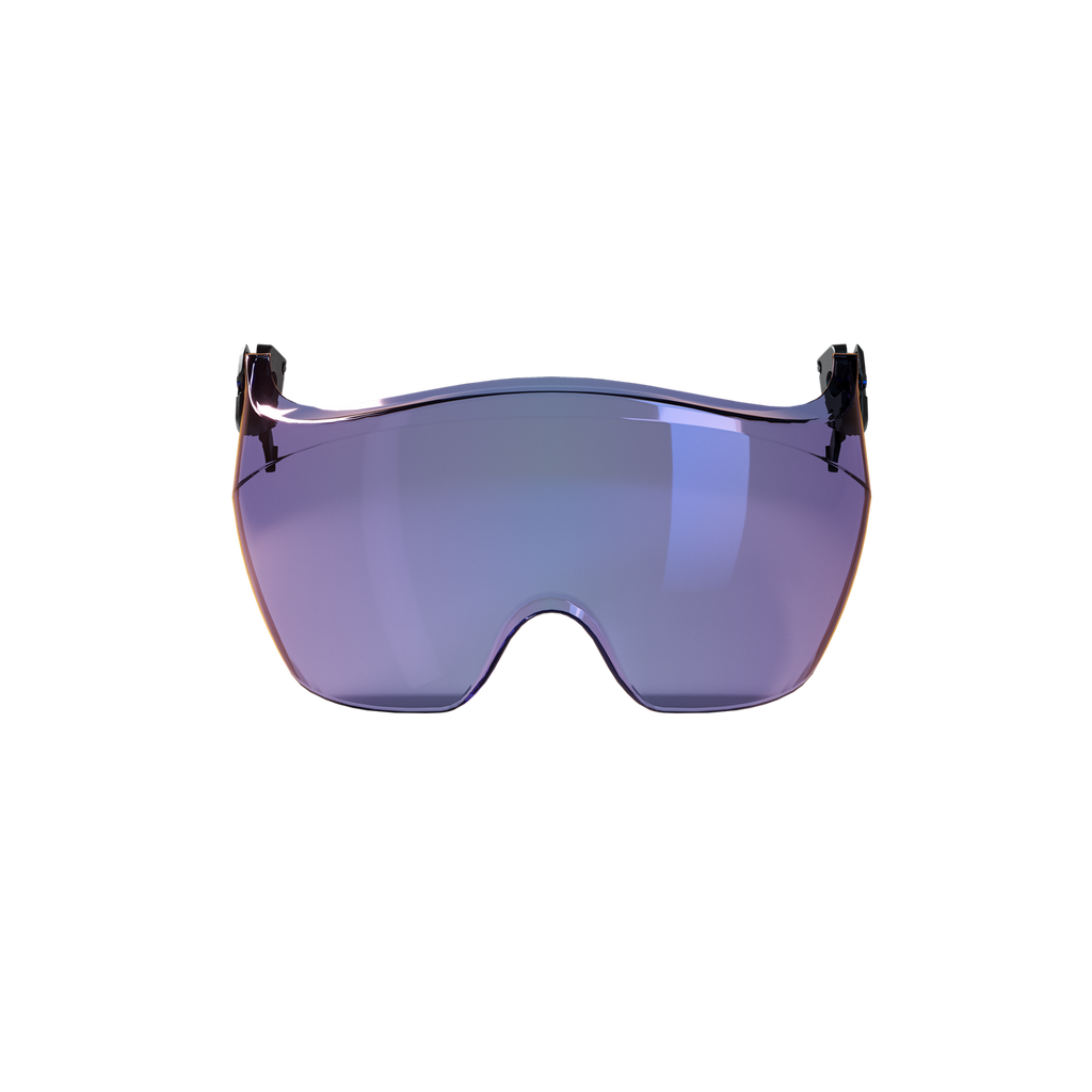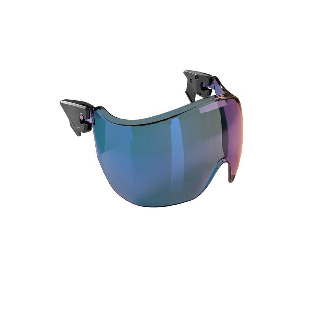 Kort visir, der beskytter øjnene mod slag, stød og flyvende partikler. Leveres med fastgørelser, der nemt monteres på hjelmen. Visiret kan med en jævn vippebevægelse veksle mellem to positioner: enten løftes til en fast standby-position eller sænkes ned i arbejdspositionen. Findes i to varianter: en klar med den højeste optiske klassificering og optimal slagbeskyttelse, samt en Smoke Blue Mirror, der reducerer genskin og afviser sollys.