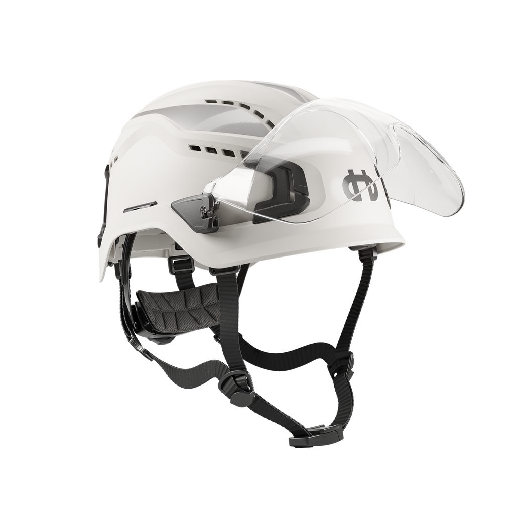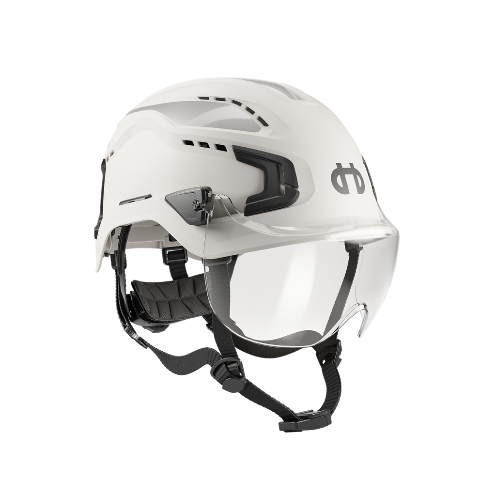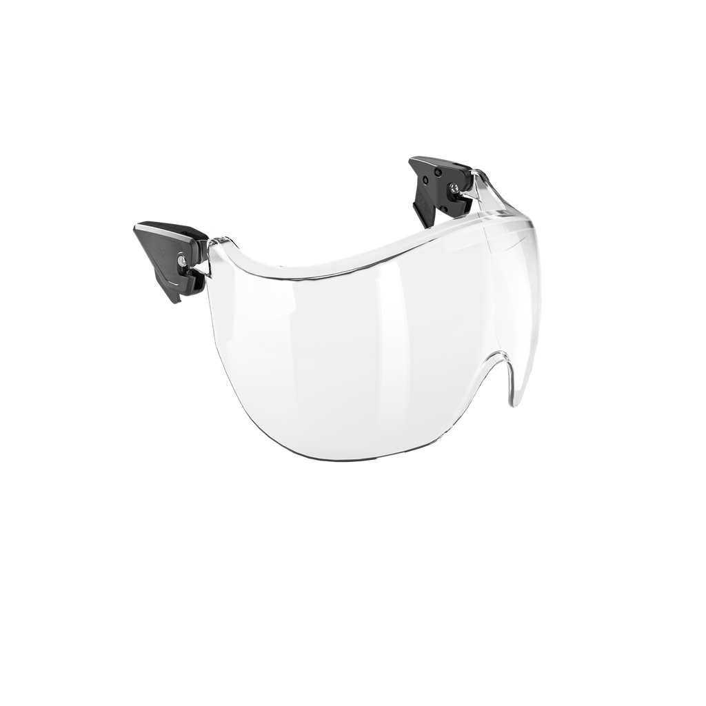Kort visir, der beskytter øjnene mod slag, stød og flyvende partikler. Leveres med fastgørelser, der nemt monteres på hjelmen. Visiret kan med en jævn vippebevægelse veksle mellem to positioner: enten løftes til en fast standby-position eller sænkes ned i arbejdspositionen. Findes i to varianter: en klar med den højeste optiske klassificering og optimal slagbeskyttelse, samt en Smoke Blue Mirror, der reducerer genskin og afviser sollys.