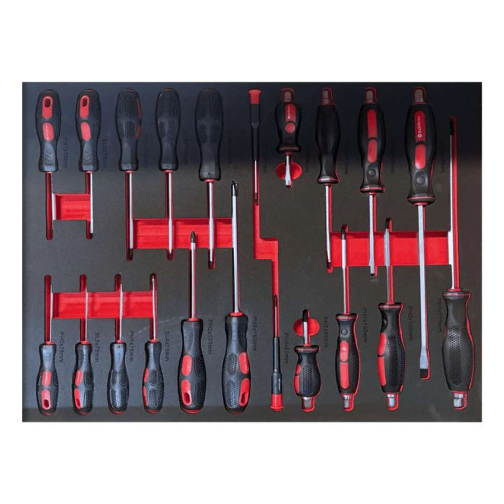 Denne værktøjsvogn er ideel til både professionelle værksteder og krævende gør-det-selv-projekter. Den solide stålkonstruktion, det gennemtænkte design og det store udvalg af værktøj gør den til et uundværligt fundament i enhver arbejdsstation.