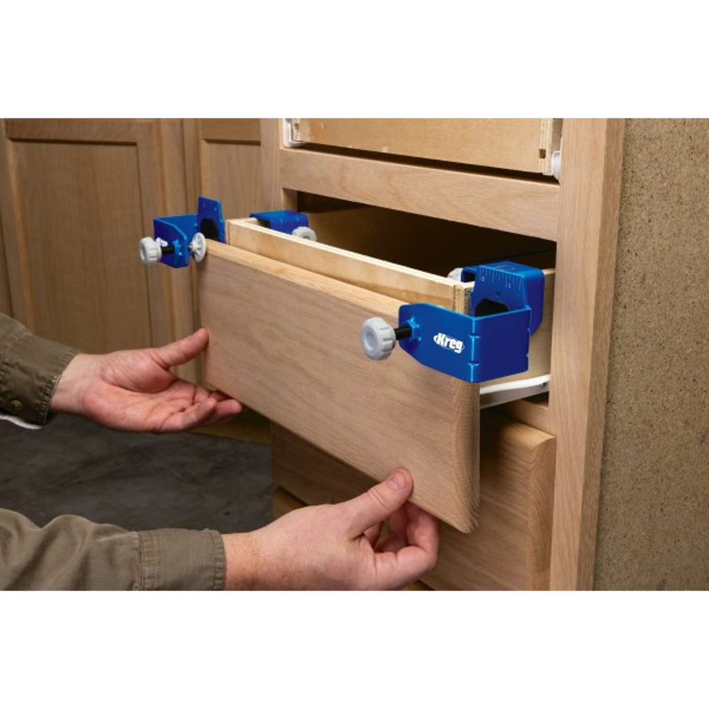 The Drawer Front Mounting Tool reduces the amount of fumbling and repositioning needed while simplifying the process into three easy steps: clamp, align, attach.