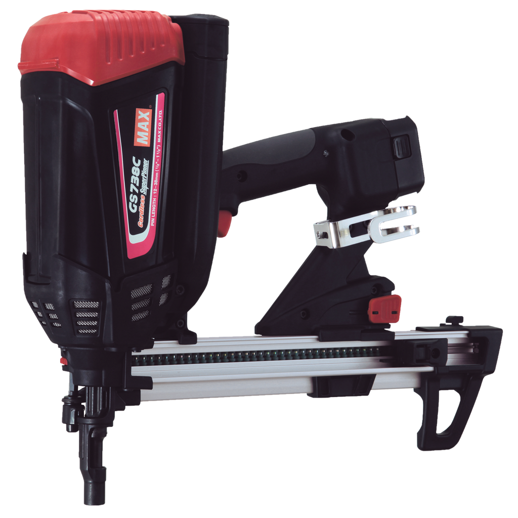 MAX GS738C Gaspistol til beton MAX GS738C er en super mobil beton-gaspistol, som gør det nemt at komme rundt. Pistolen er ekstrem driftsikker. MAXs gasdyse håndterer nemt temperaturforandringer, hvilket eleminerer behovet for "vintergas". Den smalle næse gør at pistolen nemt kan komme ind i hjørnerne, hvilket gør den ideel, når man skyder gipsskinner på beton. GS738C har en vendbar bæltekrog til nem ophængning af værktøjet, når det ikke bruges.
