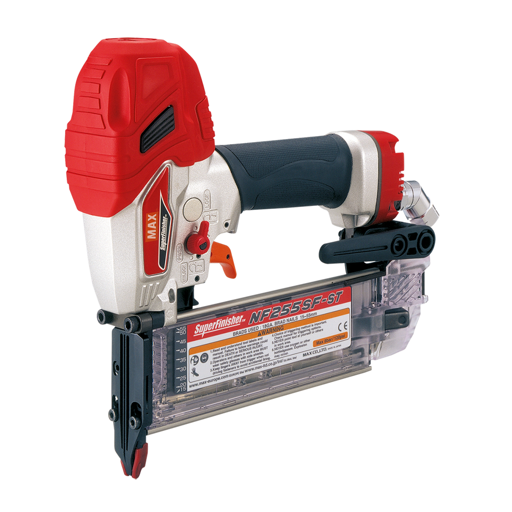 MAX NF255SF-ST stiftpistol, 8 bar Kompakt 18 gauge trykluft-stiftpistol, som er let at arbejde med. Kontaktspidsen er smal, hvilket giver god mulighed for at arbejde nær hjørner.