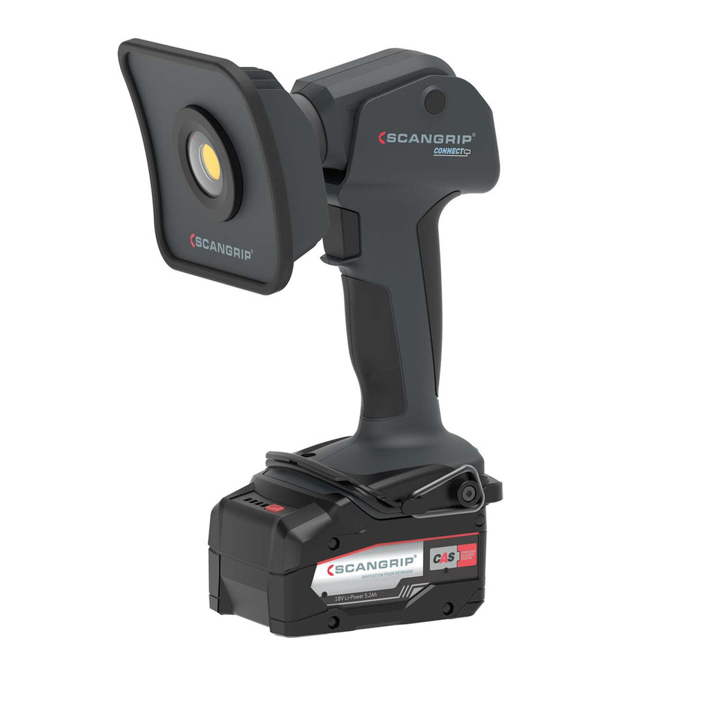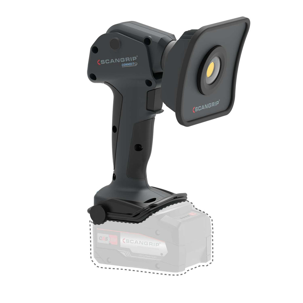 MULTILIGHT CONNECT er kompatibel med METABO/CAS 18 V batterisystemet og andre 18/20-V-batteripakker fra førende mærker inden for elektrisk håndværktøj ved hjælp af SCANGRIP CONNECTOR-adapteren. Derudover kan du tilslutte strømforsyningen POWER SUPPLY CONNECT direkte, så du har ubegrænset adgang til lys.