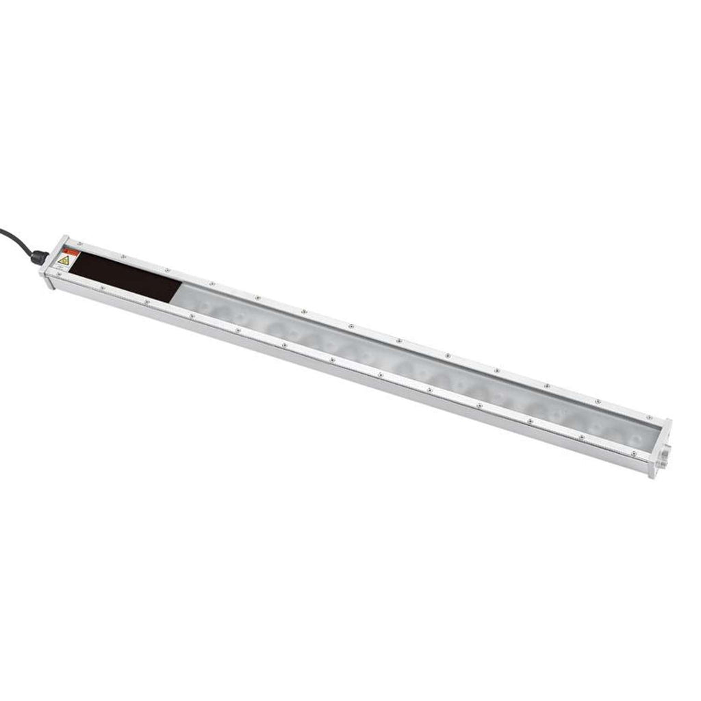 • Anodiseret aluminiumskabinet med stærkt, hærdet glas • Beskyttelsesgrad IP67 gør lyset modstandsdygtig over for mange fedtstoffer, kølevæsker og partikler • Armaturet bruges i maskiner eller arbejdspladser med begrænset plads, der kræver store lysresultater • Længde: 870 mm • Lysspredning: 80° • LED levetid op til 50.000 timer • Lumen: 3040 • Lys farve: 5700 Kelvin • Farvegengivelse (CRI): > 80 • Arbejdstemperatur -20°C til +45°C • Fastgørelsessystem: 2 stk. vinkelbeslag • Effekt forbrug: 40W • Kabellængde: 1,8 meter med EU stik • Strømtilslutning: AC 100V - 240V